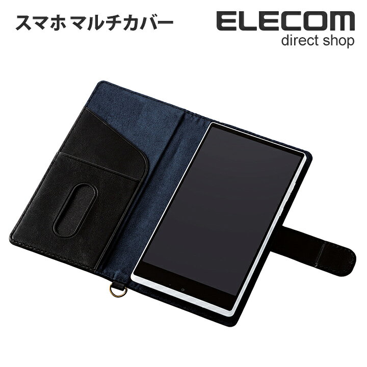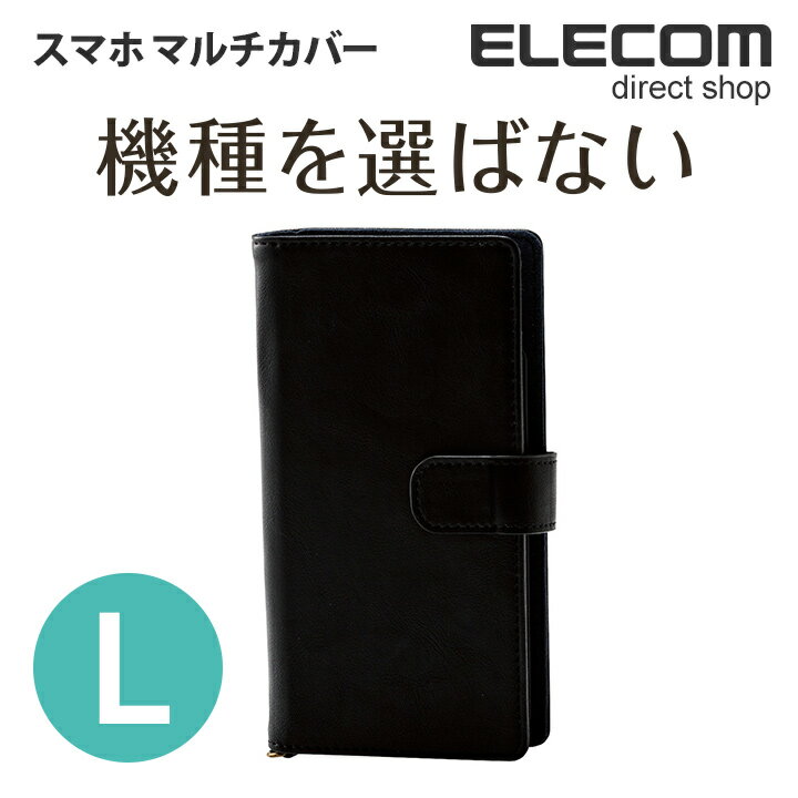 エレコム スマホ用 手帳型マルチケース ソフトレザーカバー マグネットベルト Lサイズ 5.2inch ブラック P-02PLFYMBK